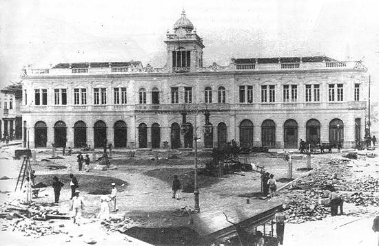 O então recém-inaugurado prédio dos Correios e Telégrafos, no Largo do Rosário, que passava por obras de remodelação, cerca de 1903: