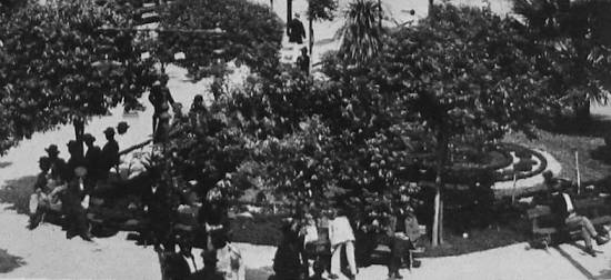 Num pormenor dessa imagem, um momento de descontração na praça que era então o centro da atividade urbana: