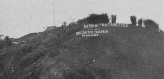 Em outro pormenor, a propaganda então comum no alto do Monte Serrat: