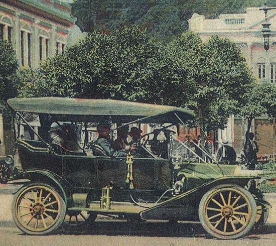 Já este cartão postal é possivelmente de 1916, pois nele aparece à direita o prédio da revista A Fita, criada em 1914 e que teria existido por dois anos. Também