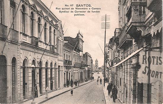 A Rua Quinze de Novembro, nos primeiros anos do século XX, era o centro econômico de Santos, com o contínuo aumento dos negócios