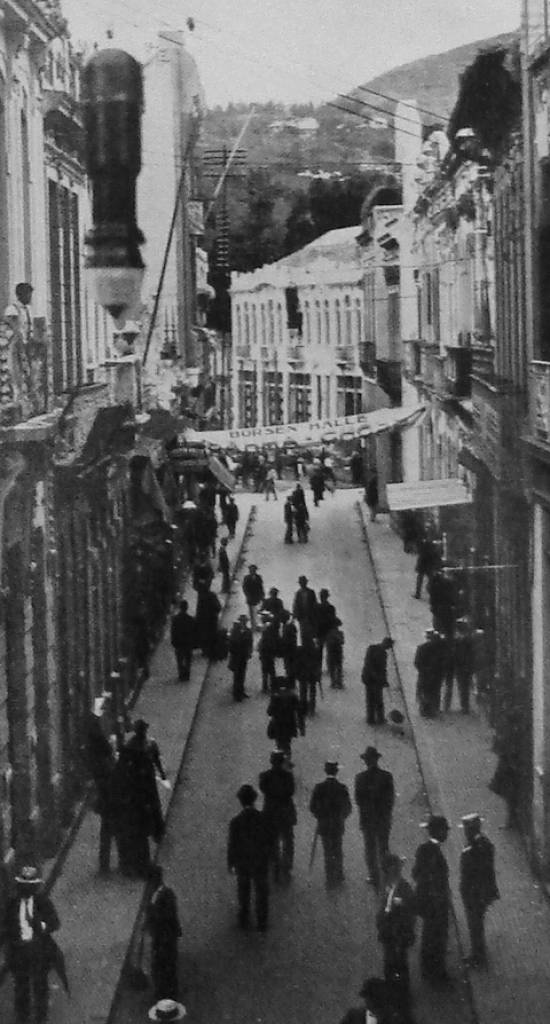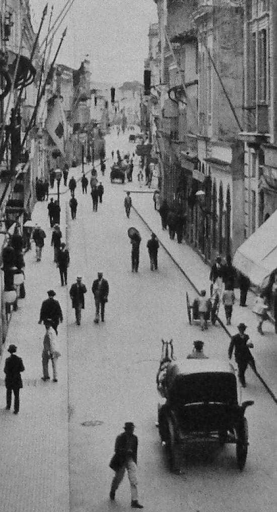 No pormenor da foto, observa-se melhor a intensa movimentação na rua: