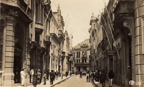 Vinte e dois anos depois, numa manhã de fevereiro de 1950, a rua continuava sendo o reduto das casas exportadoras de café e de agências bancárias e de navegação. "A fotografia foi presente do inesquecível Ezio Begotti, que trabalhou na Agência Transatlantic Carriers de propriedade do também falecido Feliciano Poço. A foto é rica em detalhes, tais como: Agência da Panair do Brasil, estabelecimentos bancários, carros da época das marcas Chevrolet, Studebacker, Prefect e Anglia. O local é nas proximidades da Rua Riachuelo", como explica Laire Giraud: