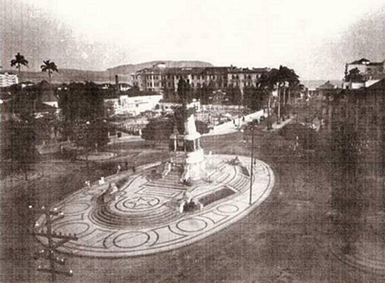 A Praça da Independência perdeu aos poucos os antigos casarões que a cercavam, como os observados nesta imagem de meados da década de 1920, que mostra alguns