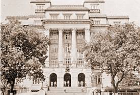 A torre no centro superior da imagem, também vista na outra reprodução da mesma cena, pertencia à Companhia Telefônica, e a quadra defronte ao jardim foi anos depois demolida para a construção do Paço Municipal, sede da Prefeitura (foto embaixo, à direita).