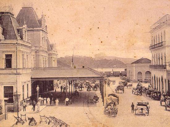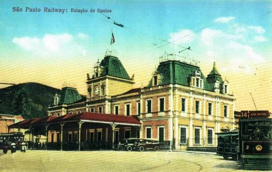 Estação terminal (gare) de Santos da ferrovia São Paulo Railway, depois Estrada de Ferro Santos-Jundiaí, no