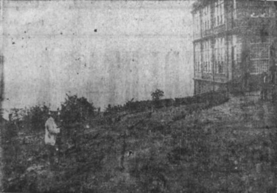 se desloca, pronunciada obliqüidade. Para controlar esse afastamento, colocou-se sobre os dois terrenos uma vara. Os curiosos que se vêem no clichê