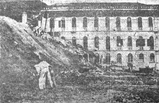 Santa Casa com a terra acumulada. Estabeleça-se a proporção e se terá a idéia exata do que foi a avalanche desabada"