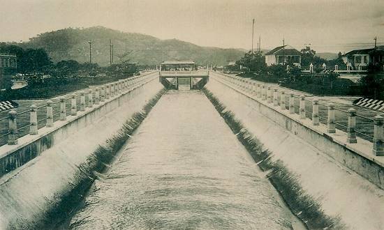Construção de ponte no canal da Av. Canpos Salles, para a passagem do tráfego da Avenida Conselheiro Nébias:
