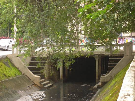 Esta imagem é do canal da Avenida Francisco Manoel, no ponto da junção com o da Avenida Pinheiro Machado, tendo à esquerda o Centro de Cultura e à direita as instalações da universidade Unip:
