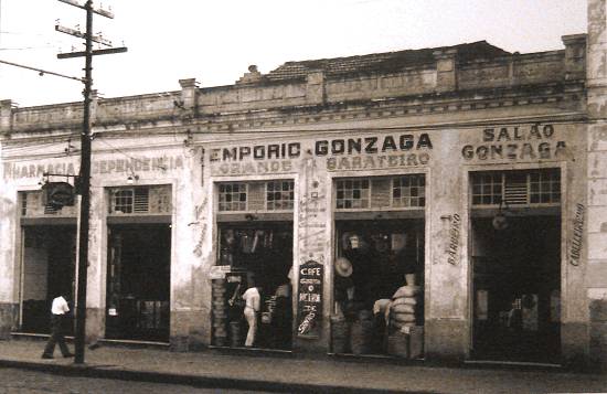 então, para venda de alimentos, ferragens, materiais de construção e outros produtos, daí ser também conhecida como "armazém de secos e molhados") - anunciando que ali comercializava o "Café Gonzaga, o melhor de Santos" -, o salão de barbeiro