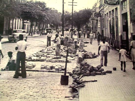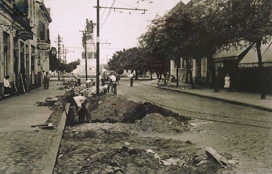 Independência. No primeiro plano, operários trabalham no seu alargamento: