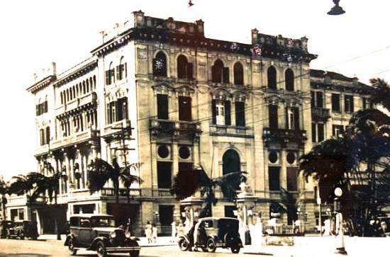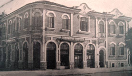 Já esta foto, de 1931, mostra a Farmácia Independência, que existia na confluência das vias Floriano Peixoto e Marechal Deodoro com a Praça da Independência, em local mais tarde ocupado por uma
