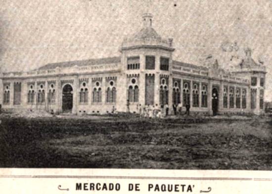 Essa foto foi também divulgada na forma de cartão postal, em 1905. Segundo recorda o jornalista José Carlos Silvares, "o mercado é visto ainda em sua construção original,  de 1902, na praça que tinha seu nome (Praça do Mercado), depois rebatizada para Praça Iguatemi Martins. O mercado também era conhecido como Mercado de Paquetá, por causa do nome daquela parte do bairro, hoje denominada Vila Nova. O prédio tinha um estilo acastelado. Tinha diversos boxes de venda de frutas, verduras, legumes, peixes e carnes. O prédio foi reformado em 1947 e em 1955 foi ampliado, recebendo o segundo andar, com as características de como está até hoje".