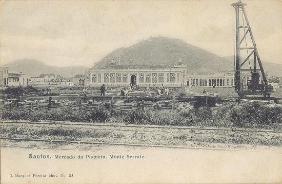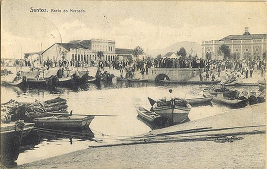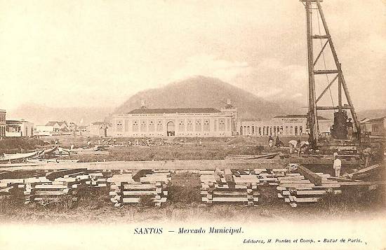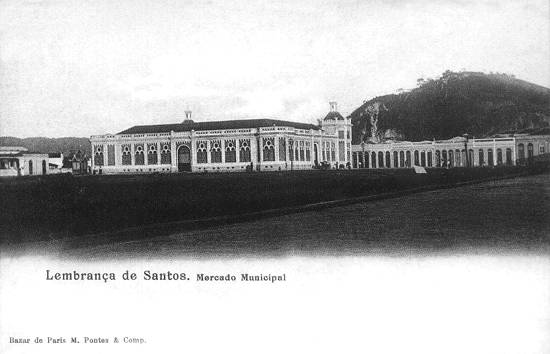 Em 1902, foi construído o Mercado Municipal de Santos, na então Praça do Mercado, depois Praça Iguatemi Martins, no bairro Vila Nova. Para ali foram deslocados o antigo Mercado Provisório do Largo dos Gusmões (inaugurado em 1880 para substituir o Mercado das Casinhas, que até então funcionava na atual Praça da República) e o Porto de Lenha ou Mercado das Canoas (que funcionava no bairro vizinho do Paquetá, na margem do Estuário). Esta foto foi publicada em 1915: