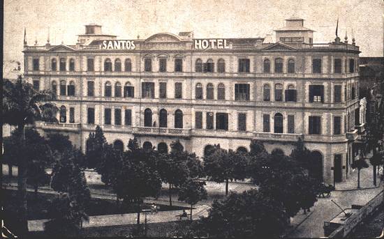 Este cartão-postal mostra o imponente Santos Hotel, em imagem de 1926, quando o
