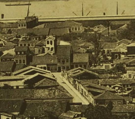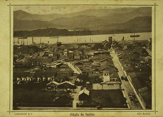 1900, o fotógrafo Guilherme Gaensly registrou esta cena, da área central de Santos e do porto, e que é preservada na Biblioteca Mário de Andrade,