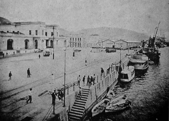 O cais 5/6, na direção da Praça da República, foi se firmando nas primeiras décadas do século XX como local para a travessia de passageiros até o então Itapema, depois Vicente de Carvalho, no atual município de Guarujá. Esta foto de José Marques Pereira foi publicada em 1902:
