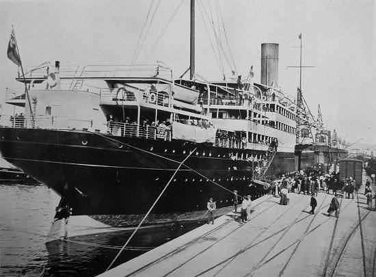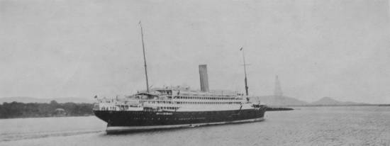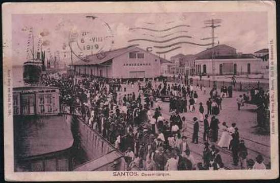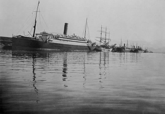 Esta foto foi publicada em 1915, mostrando o transatlântico Arlanza, em uma de suas escalas no porto santista: