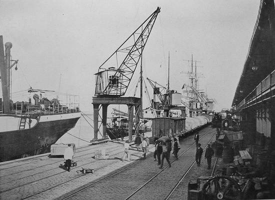 Movimentação de mercadorias de e para um navio cargueiro, em 1915:
