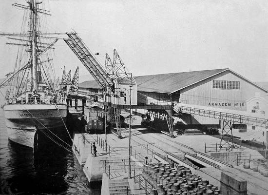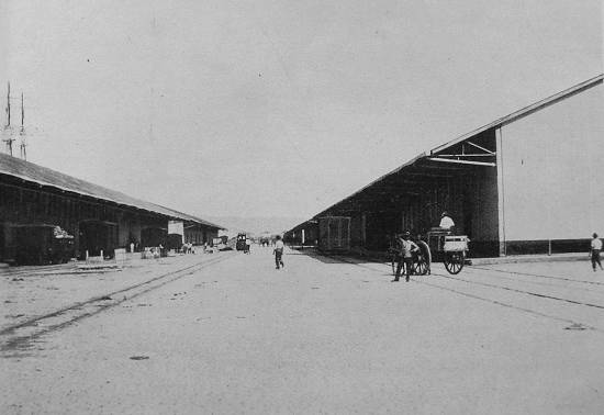 Um aspecto geral da área de armazenagem do cais, em 1915: