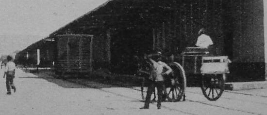 Naquela época, as carroças ainda eram empregadas no transporte de mercadorias, como se observa nesse detalhe da foto: