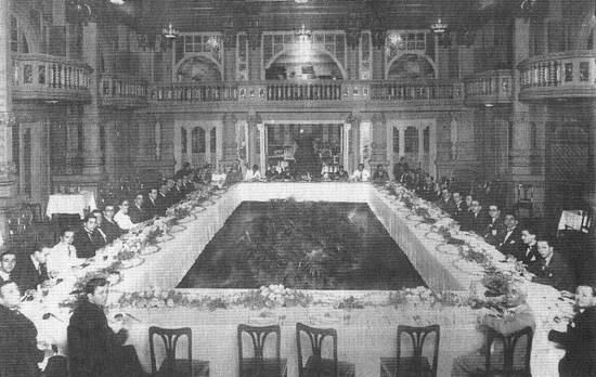 Até a década de 1970, no Salão de Mármore do Hotel Parque Balneário aconteciam formaturas, confraternizações e outras solenidades, como visto nesta imagem, do acervo de João Augusto da Silveira: