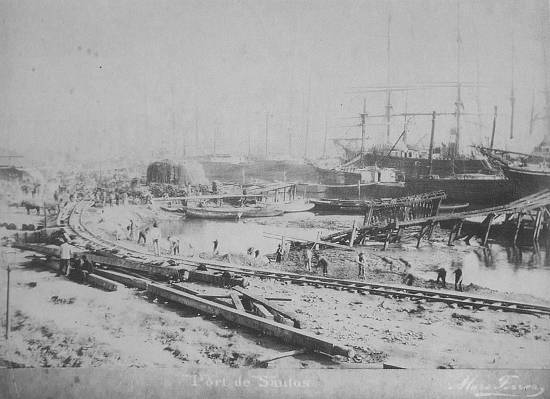 Um dos principais atracadouros santistas no século XIX era o Porto do Consulado, situado no largo do mesmo nome, aproximadamente na direção da atual