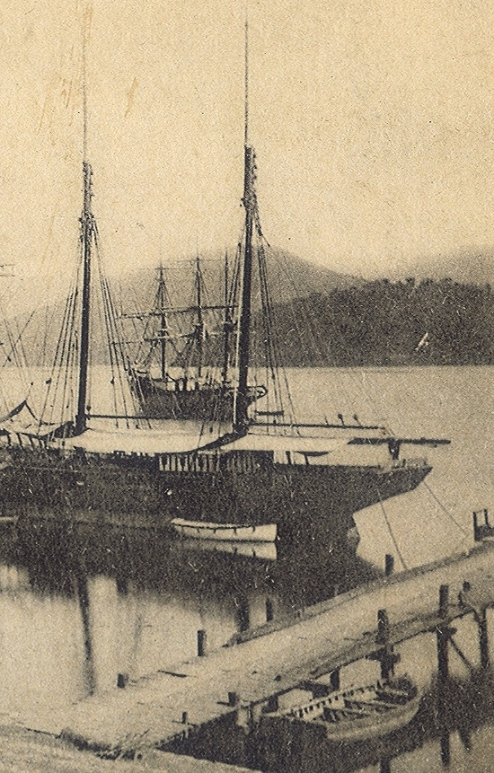 Valongo, vendo-se um dos trapiches para acesso a um navio misto vela-vapor, no final do século XIX.