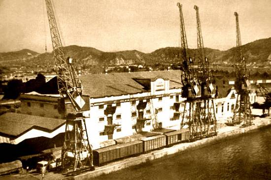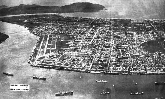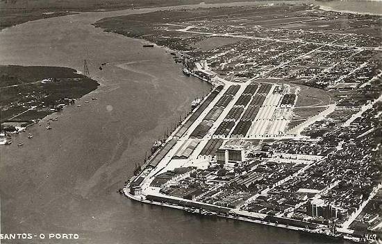 No período entre as duas guerras mundiais, apesar da Grande Depressão econômica de 1929, o porto de Santos continuou sendo expandido. Esta é uma vista geral do porto, nesse ano final da década de 1920: