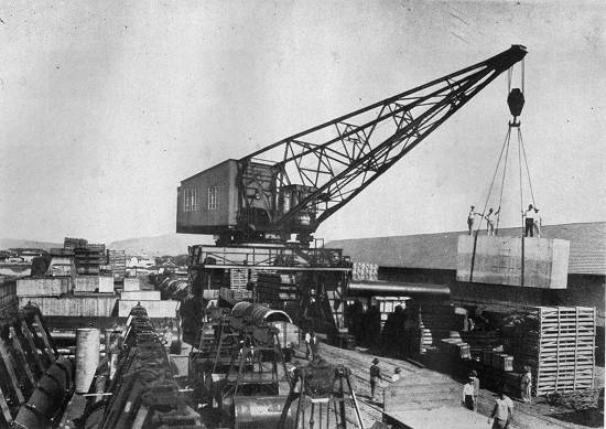 Pátio para volumes pesados, com guindaste elétrico de 30 toneladas, ainda em 1929:
