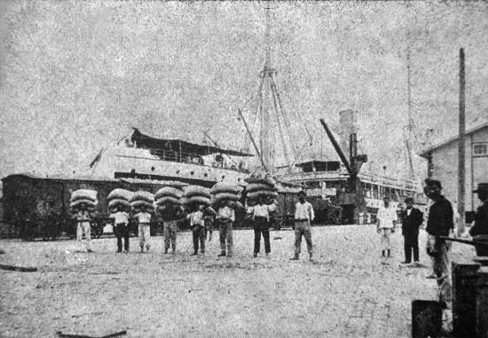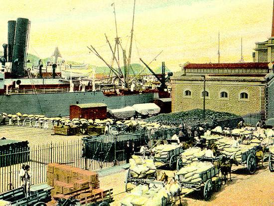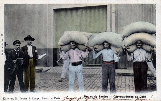 Até a primeira década do século XX, o café chegava ao porto em carroças, procedente das fazendas, geralmente sendo levado pelos carregadores diretamente aos navios: