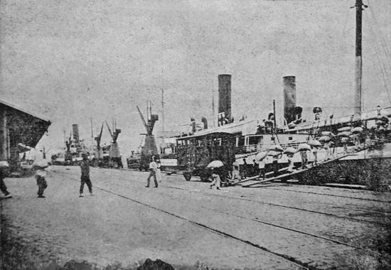 No início do século XX, o cais santista, já com acostamento em amurada, tinha ainda a operação de carga integralmente manual, e continuava o uso de carroças para