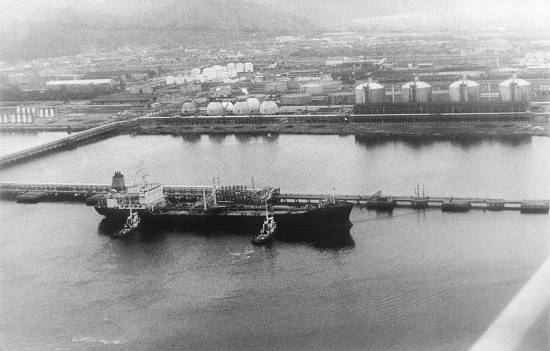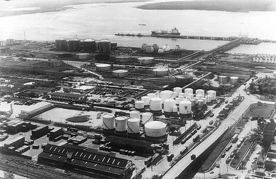 No início da década de 1990, uma vista aérea desse terminal para granéis líquidos