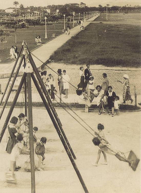 Para a criançada, a diversão nessa época eram os balancês e gangorras instalados ao longo dos jardins: