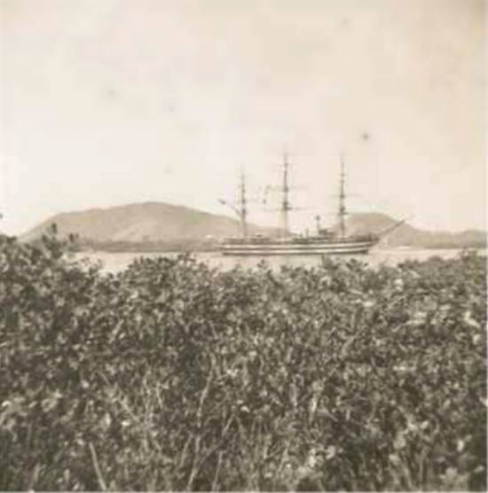 Na mesma época, também visto daquela área da Ponta da Praia, um veleiro deixando o