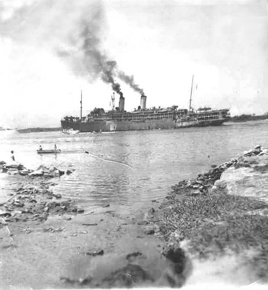 primeira, observadores em terra acompanham a passagem de um navio entrando no estuário do porto santista: