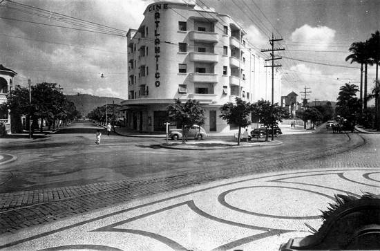 Cine Atlântico, em 1939, entre a então Rua Marechal Deodoro (à esquerda) e a Avenida Ana Costa: