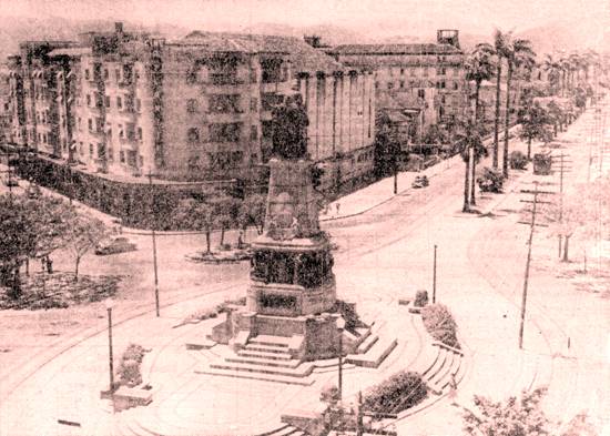 Na mesma década, mais uma foto do antigo Cine Atlântico, com o monumento na Praça da Independência: