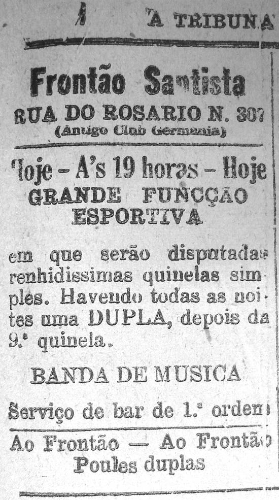 adeptos em Santos por volta do final do século XIX, contando com pelo menos esta cancha na Rua do Rosário (atual João