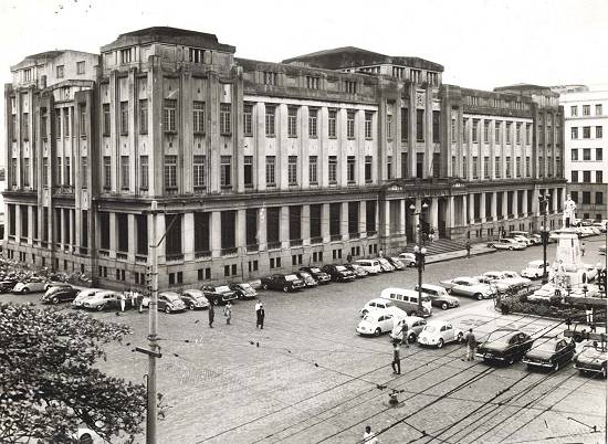 Algum tempo antes da inauguração, o prédio ainda em obras (iniciadas em 1930), notando-se a inexistência ainda do prédio da Mesa de Rendas: