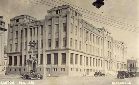 "SANTOS E SUA NOVA ALFÂNDEGA - O imponente edifício da Alfândega, cuja construção está a cargo da Cia. Docas, e onde serão instalados todos os serviços aduaneiros de Santos. Sua inauguração será efetuada brevemente, quando se ultimarem os trabalhos internos, que estão agora em plena atividade, para instalação do seu mobiliário. Com a remodelação da Praça da República, que está sendo executada pela Prefeitura e a referida empresa portuária, Santos vai apresentar mais um atestado do seu crescente progresso, e que contribuirá, sobremodo, para a estética predial da cidade."