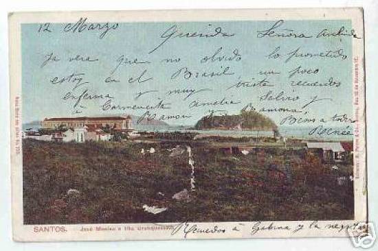 Outro cartão postal que circulou no início do século XX, comercializado pelo antigo Bazar de Paris/M. Pontes & Co., de Santos: