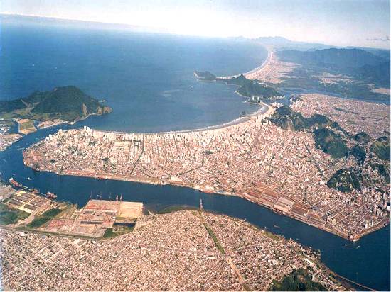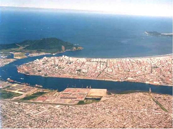 Vista geral da Ilha de São Vicente, com Guarujá e o porto