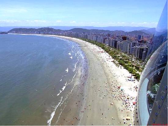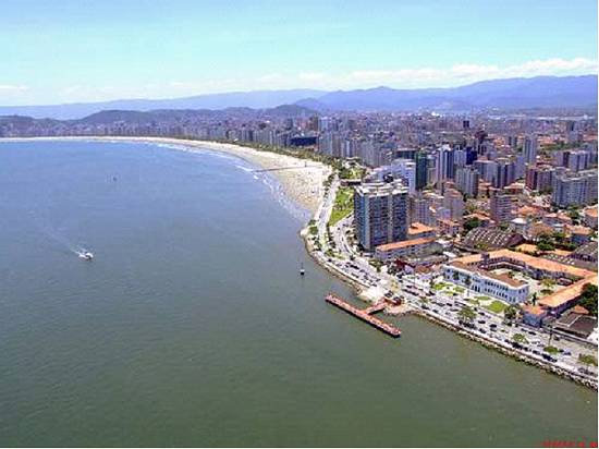 santista em 1º plano, a cidade de Santos ao centro, São Vicente à direita e Praia Grande ao
