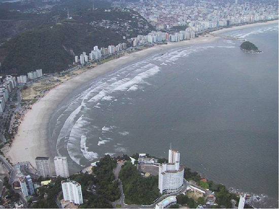 Praias Gonzaga e Boqueirão, tendo em 1º plano à direita a