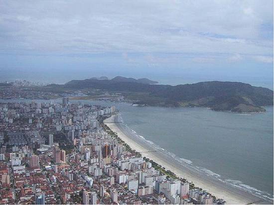 Praias santistas, tendo ao fundo a Ilha de Santo Amaro, com o município de