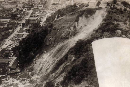 Escorregamento do Monte Serrat, vendo-se à esquerda a Avenida São Francisco