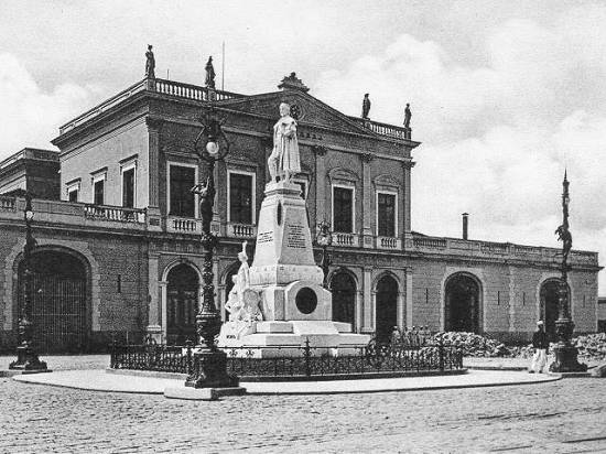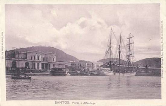 Nesta foto do início do século XX, o antigo prédio da Alfândega, antes da instalação do monumento homenageando Braz Cubas: