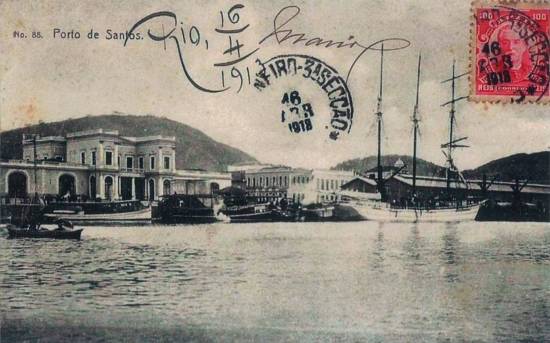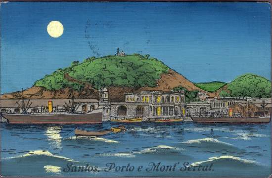 A mesma imagem foi usada neste cartão postal da Union Postale Universelle, editado em Santos por M. Pontes & Cia. e remetido desta mesma cidade em 20 de outubro de 1911: